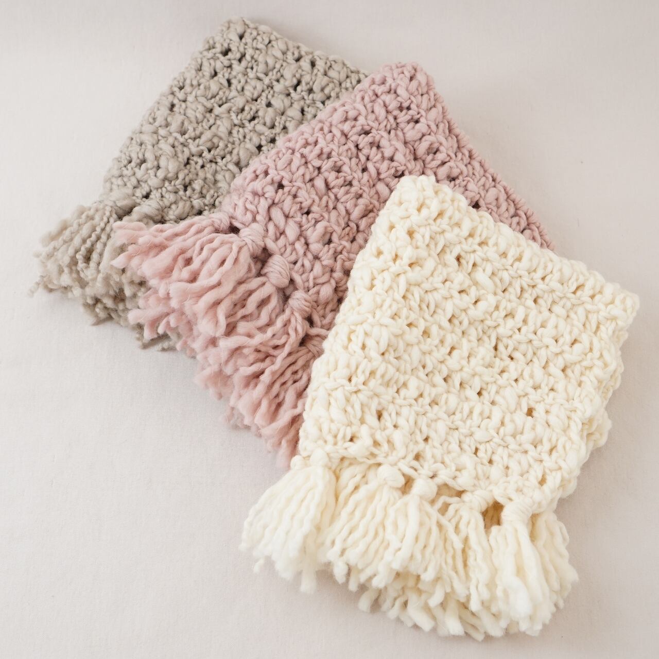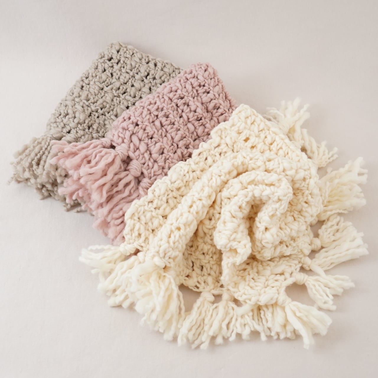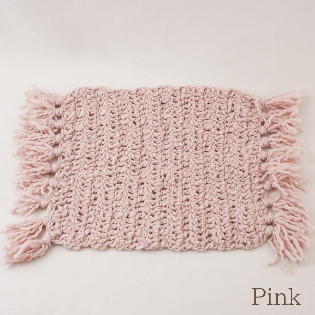 混合の太さがニュアンスある可愛いラグにタッセルをおつけしました。