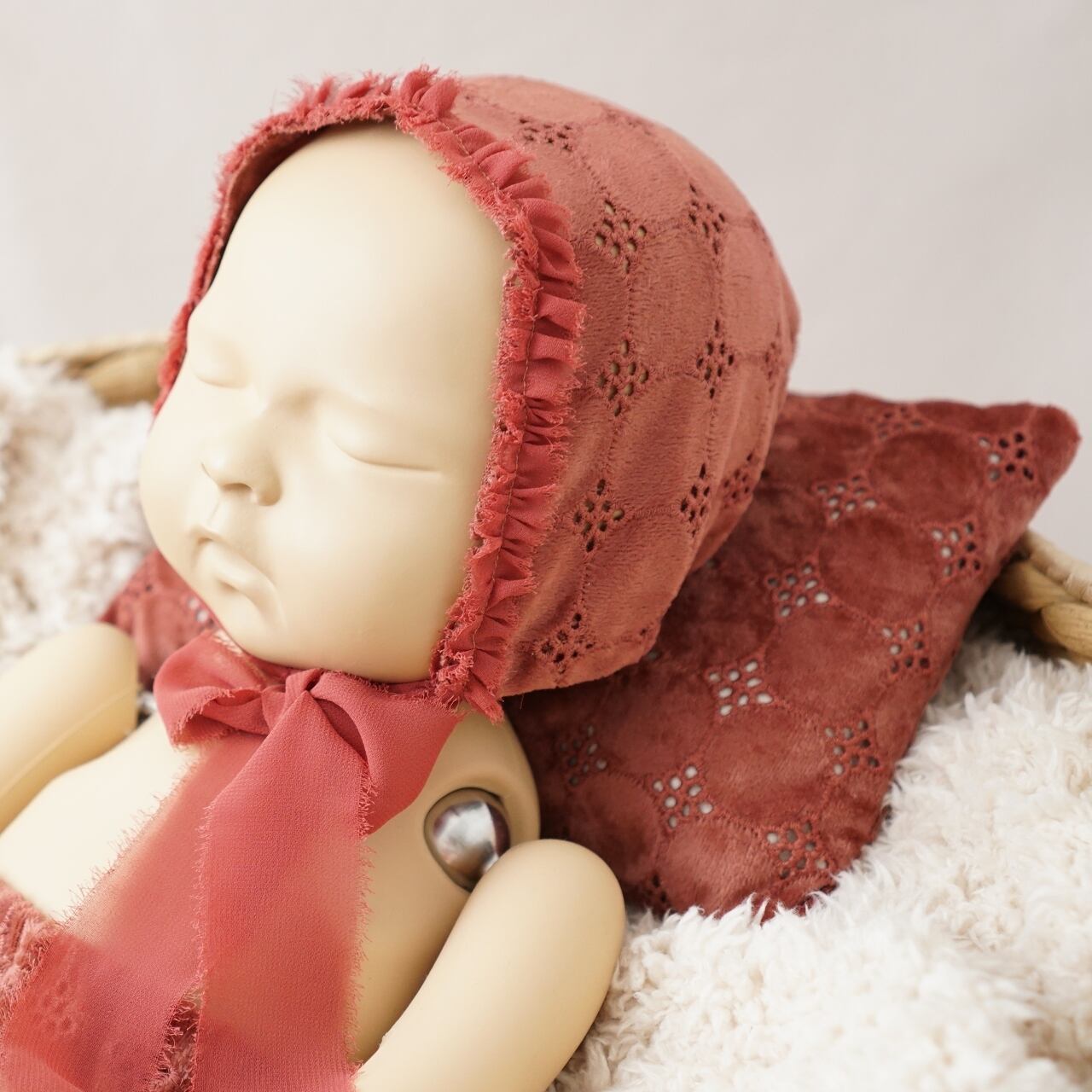 穴あきベルベットパンツ、穴あきベルベットスリーピングハット、穴あきベルベットボンネットと同じ生地を使用しております。
