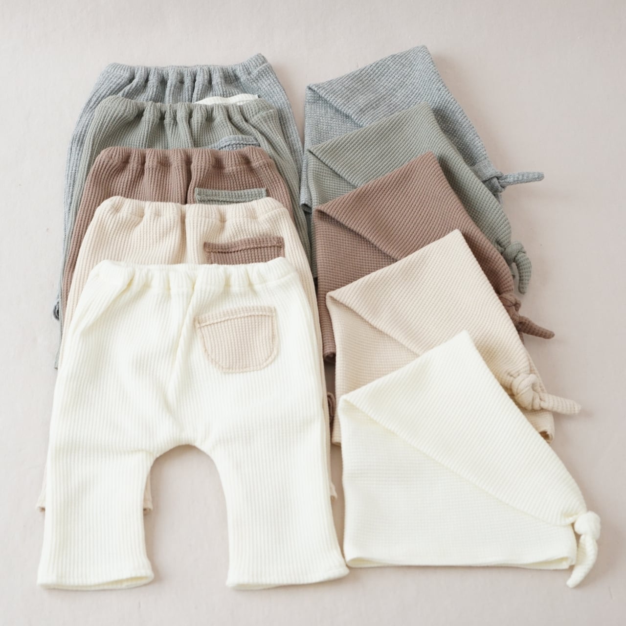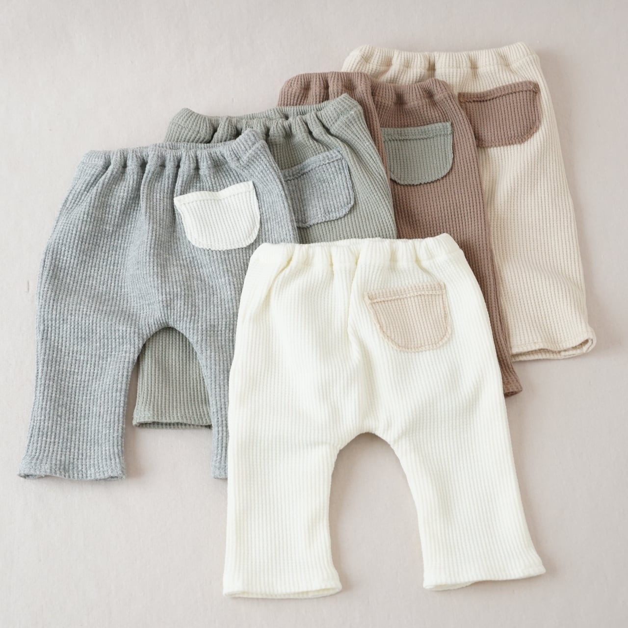 やわらかなワッフルニットでリバーシブルデザインのパンツをお作りしました。