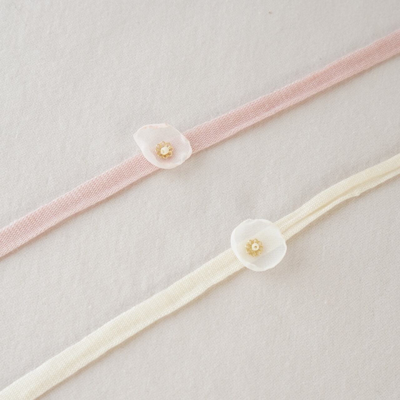 シフォン、ビーズ、ゴールドパーツを合わせたヘッドバンド。