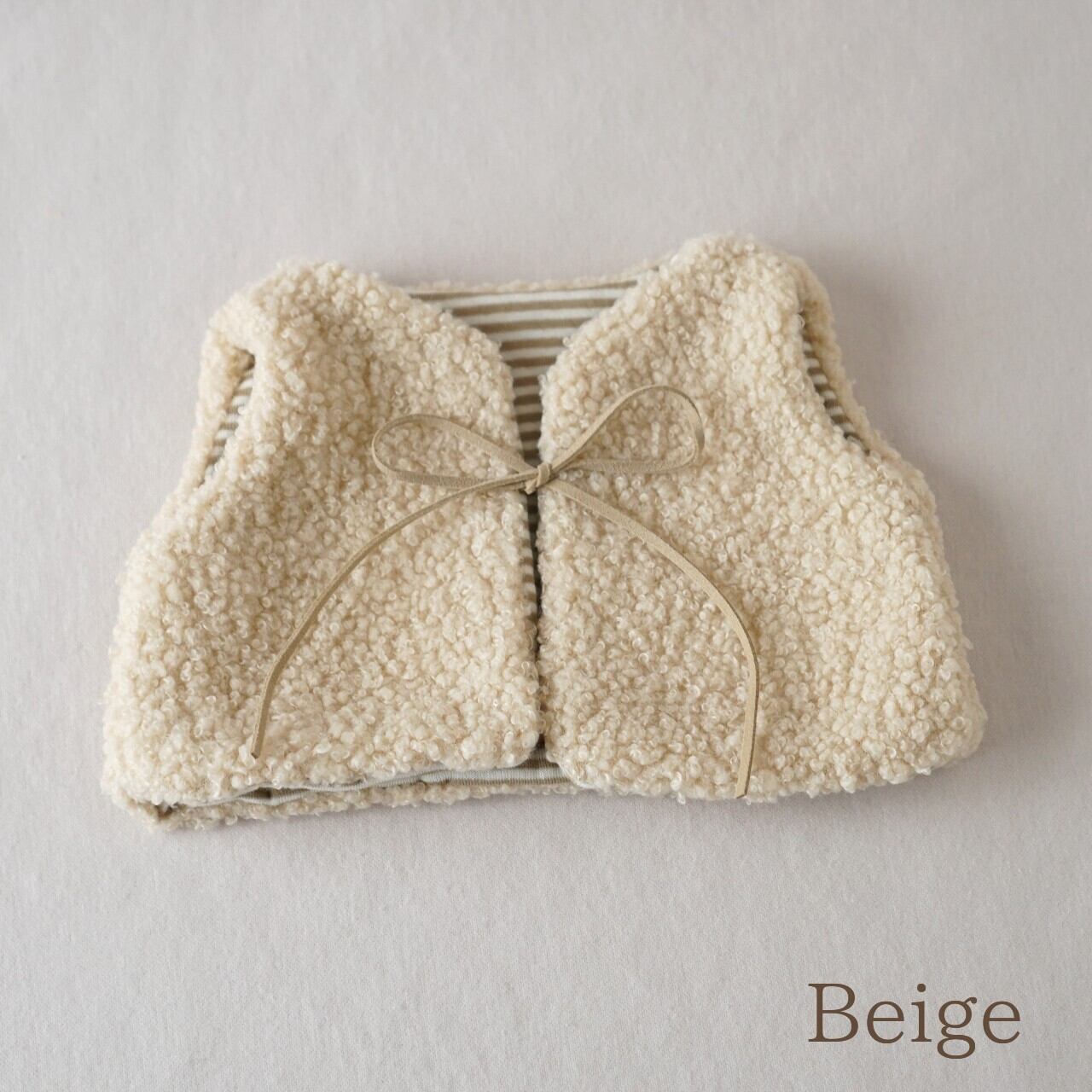 もこもこボアとボーダーのリバーシブルベストです。
