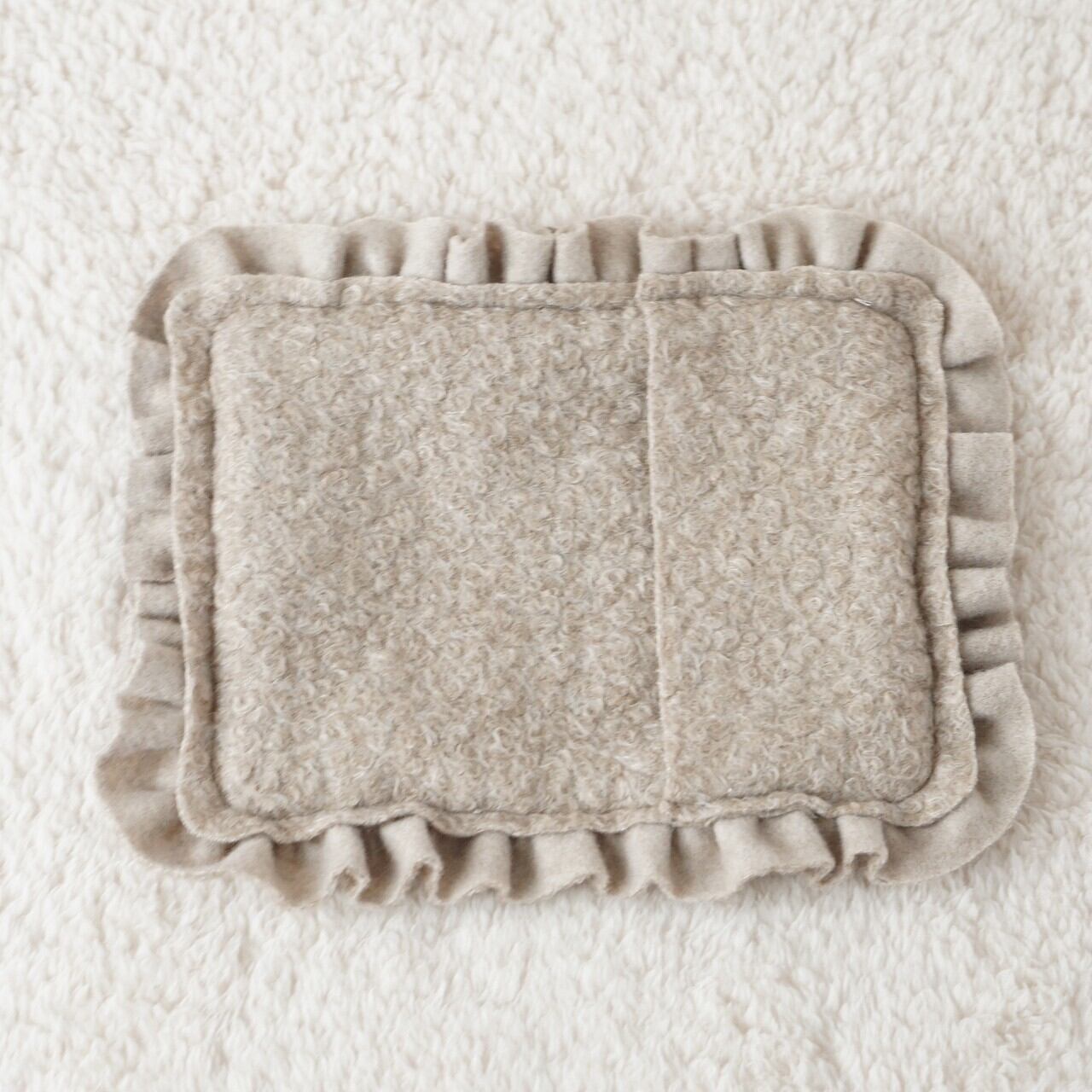厚手のブークレフエルトに刺繍をお付けした、フリル感が可愛いピローカバーです。
