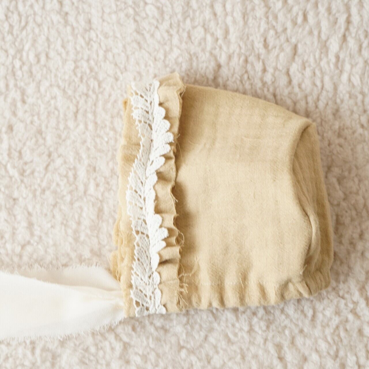 トリプルコットンにリーフレースをお付けしたボンネットです。