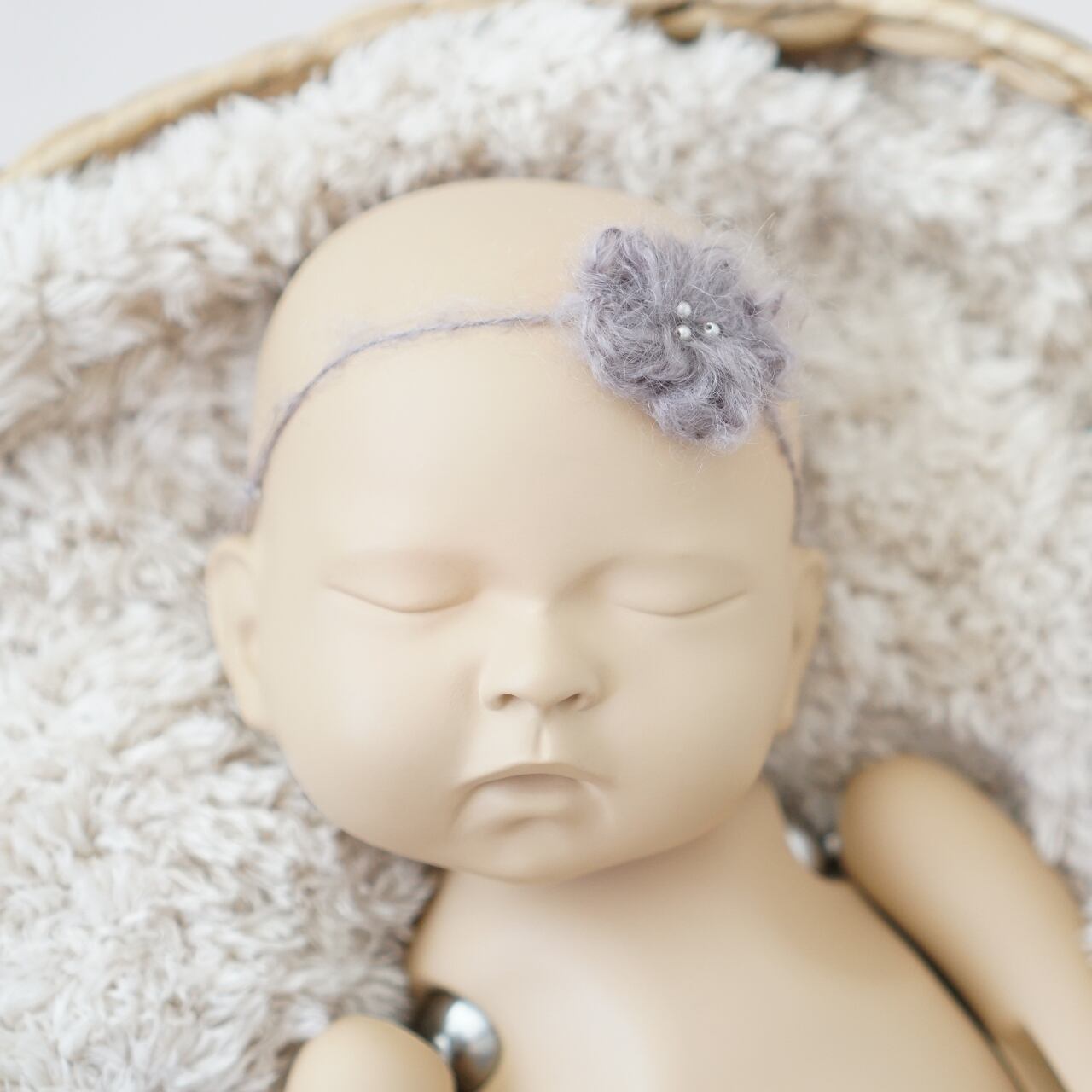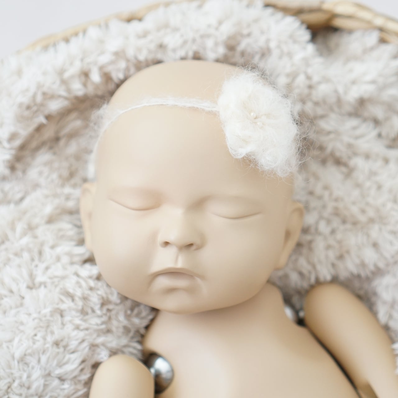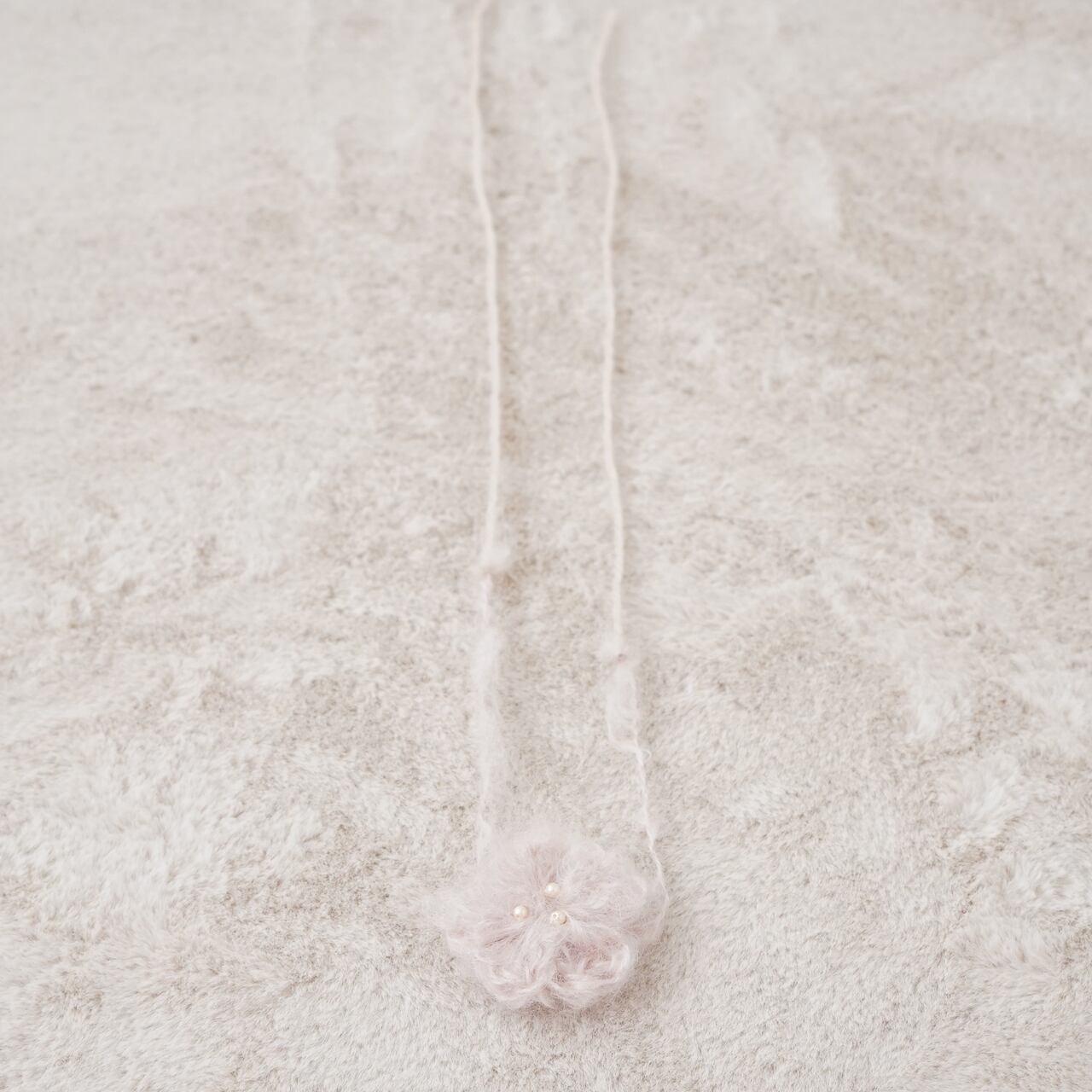 国産の生後1年に満たないアンゴラヤギからとれるキッドモヘアを使用した一輪咲きのヘッドバンド。