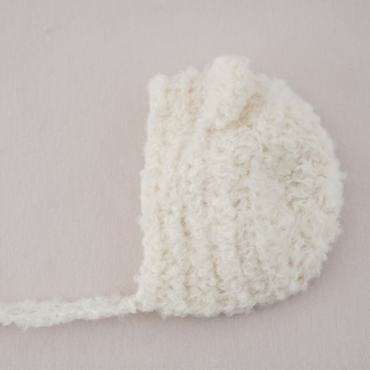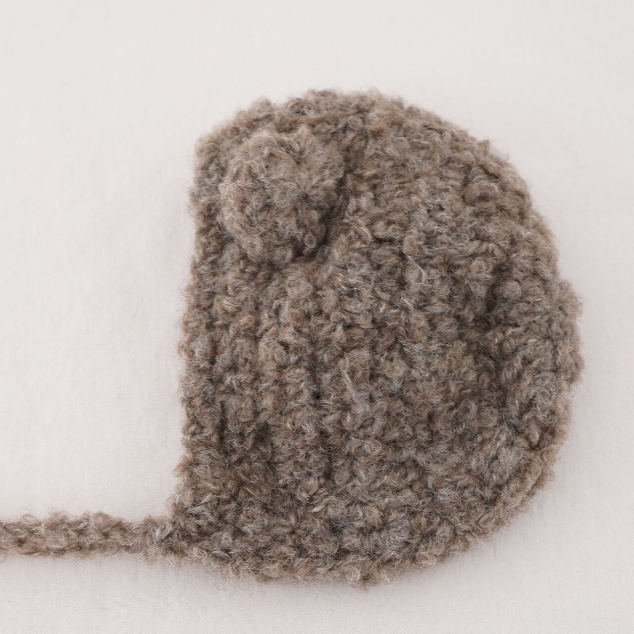 モコモコしているアルパカブークレを使いクマのボンネットをお作りしました。