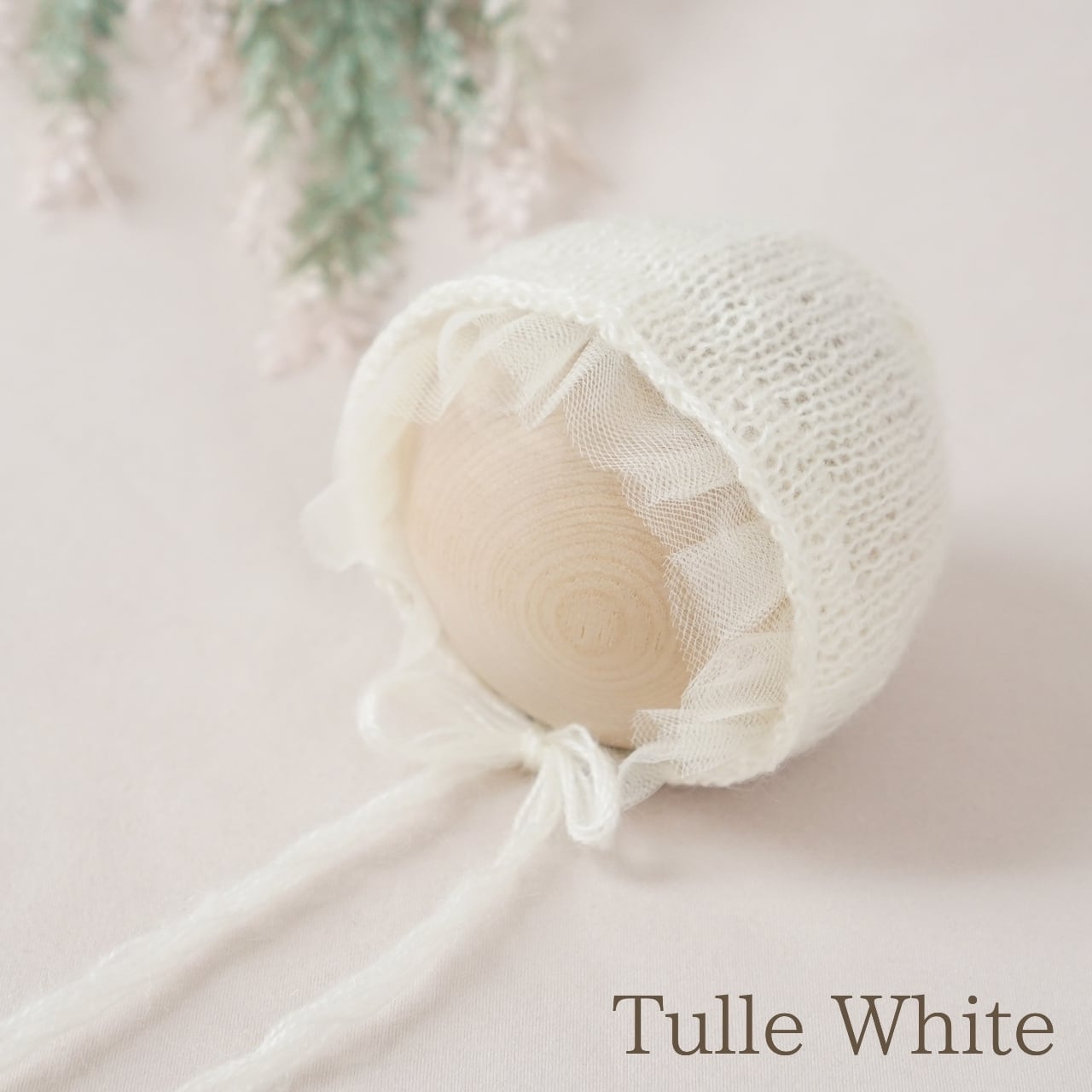 ・チュールホワイト(ホワイトのボンネットにホワイトのチュールフリル)