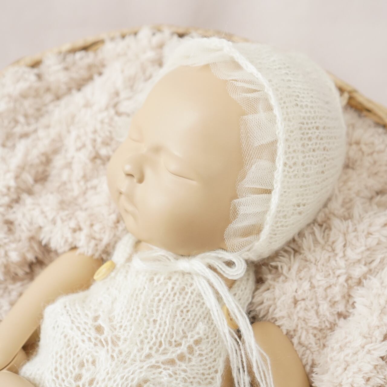 ・シフォンホワイト(ホワイトのボンネットにホワイトのシフォンフリル)