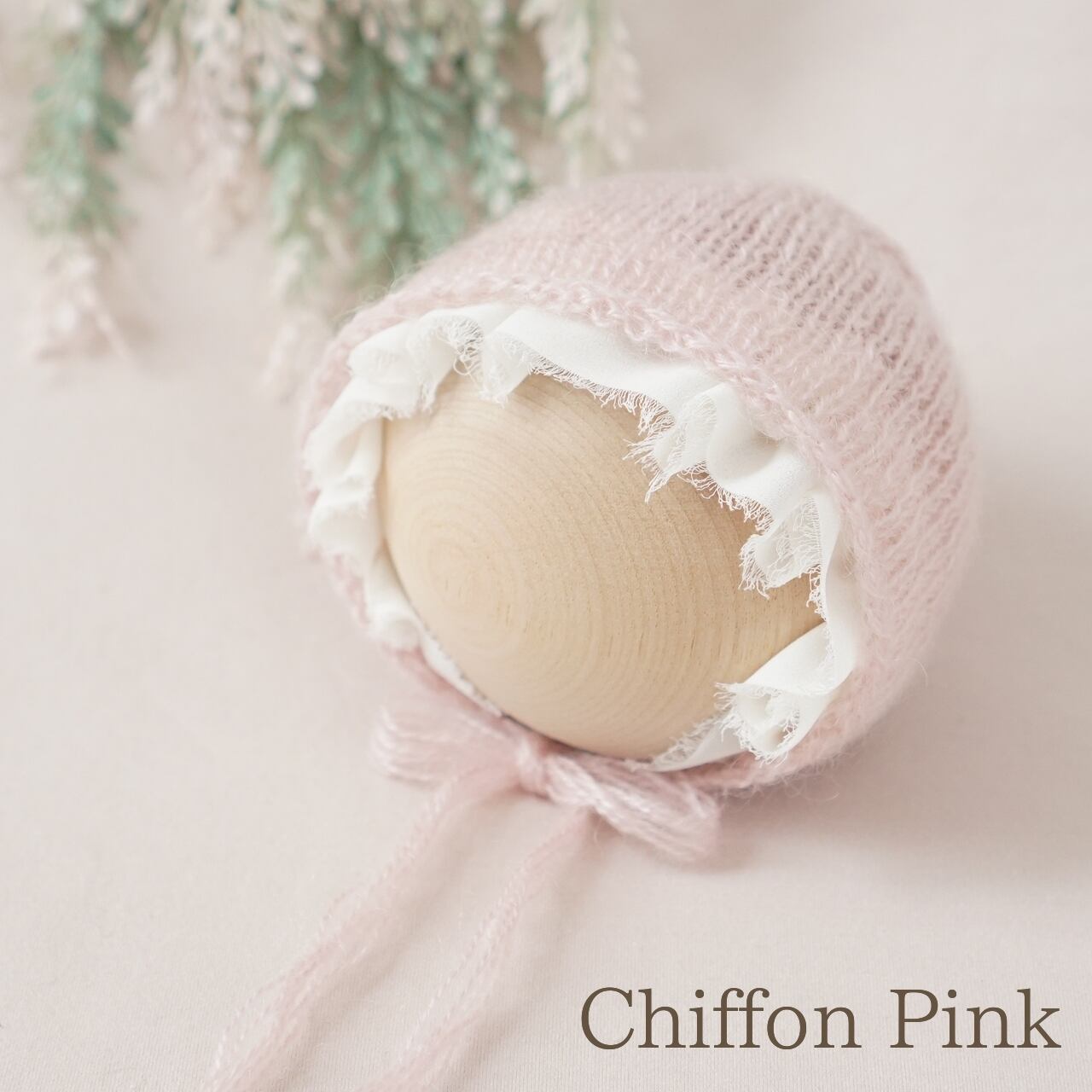 ・Chiffon Pink (white chiffon frills on pink bonnet)